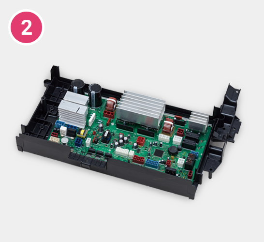 For products used in harsh environments, exposed to moisture, vibration, or direct sunlight, we leverage our long-cultivated, highly weather-resistant manufacturing technologies to ensure stable, long-lasting performance. For example, our potting technology protects control-unit circuit boards with urethane resin, delivering outstanding water, moisture, and vibration resistance.