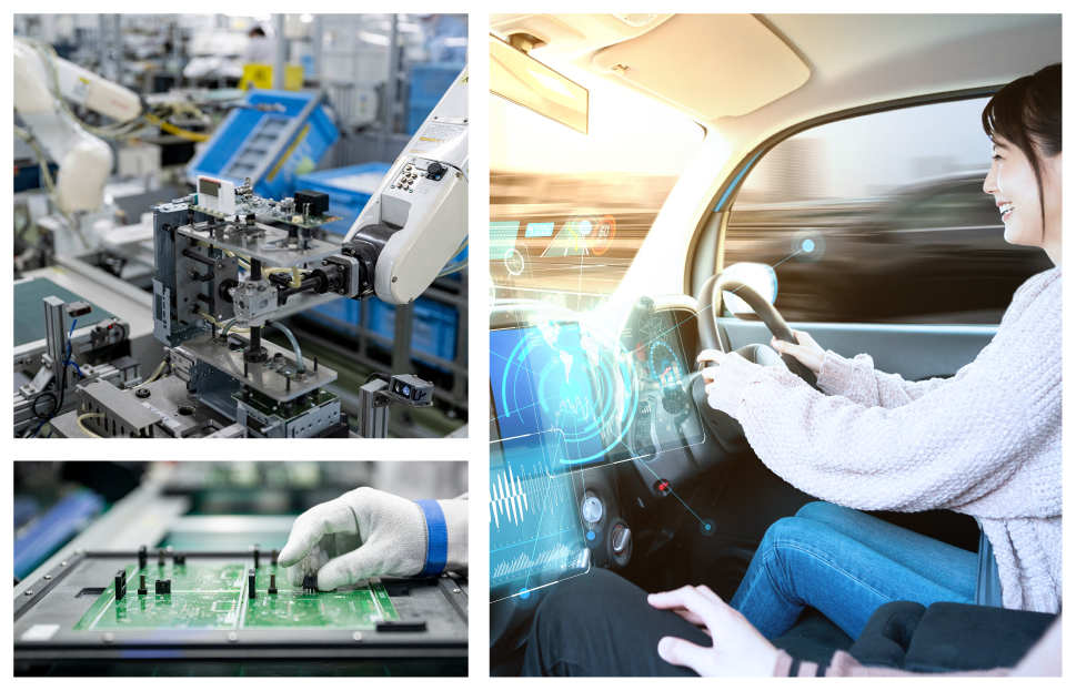 Chúng tôi cung cấp đa dạng các thiết bị điện tử ô tô như hệ thống điều khiển điều hòa, cảm biến góc, các loại bộ điều khiển và hệ thống âm thanh ô tô. Với hệ thống sản xuất tích hợp toàn diện từ thu mua linh kiện đến chế tạo, có khả năng đáp ứng linh hoạt mọi nhu cầu, từ sản xuất số lượng nhỏ đến sản xuất hàng loạt. Bên cạnh đó, tập trung phát triển các sản phẩm có giá trị gia tăng cao thông qua các đề xuất phát triển độc quyền.